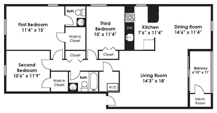 Modelo de apartamento: One Bedroom One BathDesde $1,3801 Dormitorio, 1 Baño, 689 sq ftDisponible Ahora![]()