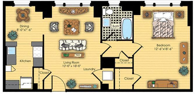 Estudio, 1 Baño, 1045 pies²Disponible Oct 17El más grandeEsta opción tiene las unidades más grandes para este modeloGalería del Modelo