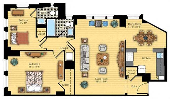 South 08 - Plano 1 Unidad de apartamento: 2908Modelo de apartamento: South 08$4,0451 Dormitorio, 1 Baño, 1000 sq ftDisponible April 6, 20262 Dormitorios