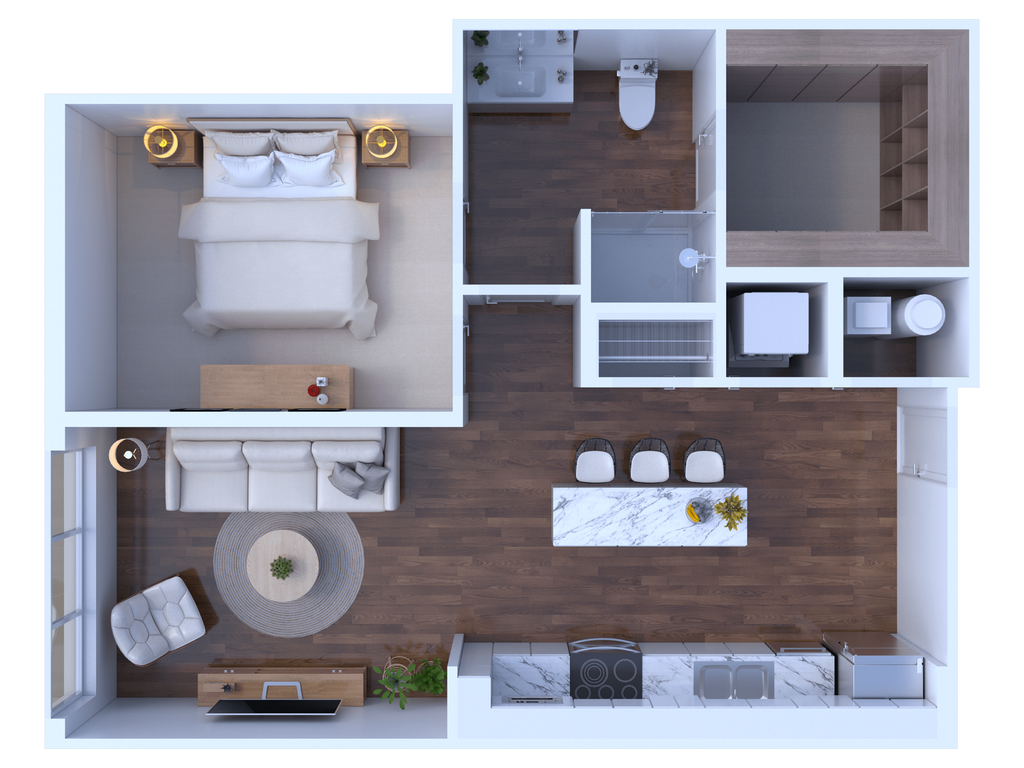 1 Dormitorio, 1 Baño, 800 pies²Disponible AhoraGalería del Modelo