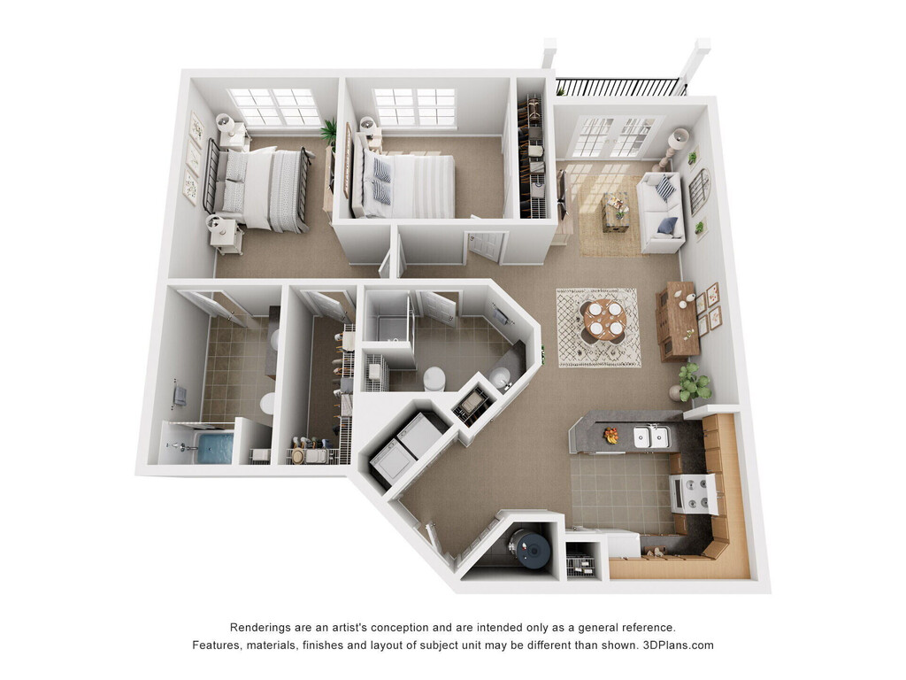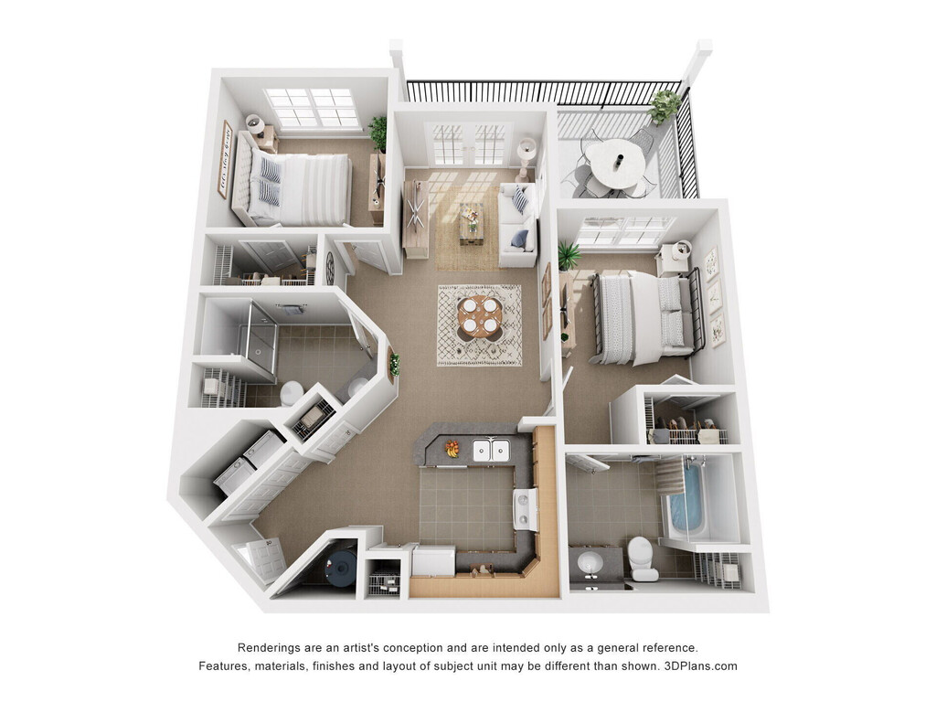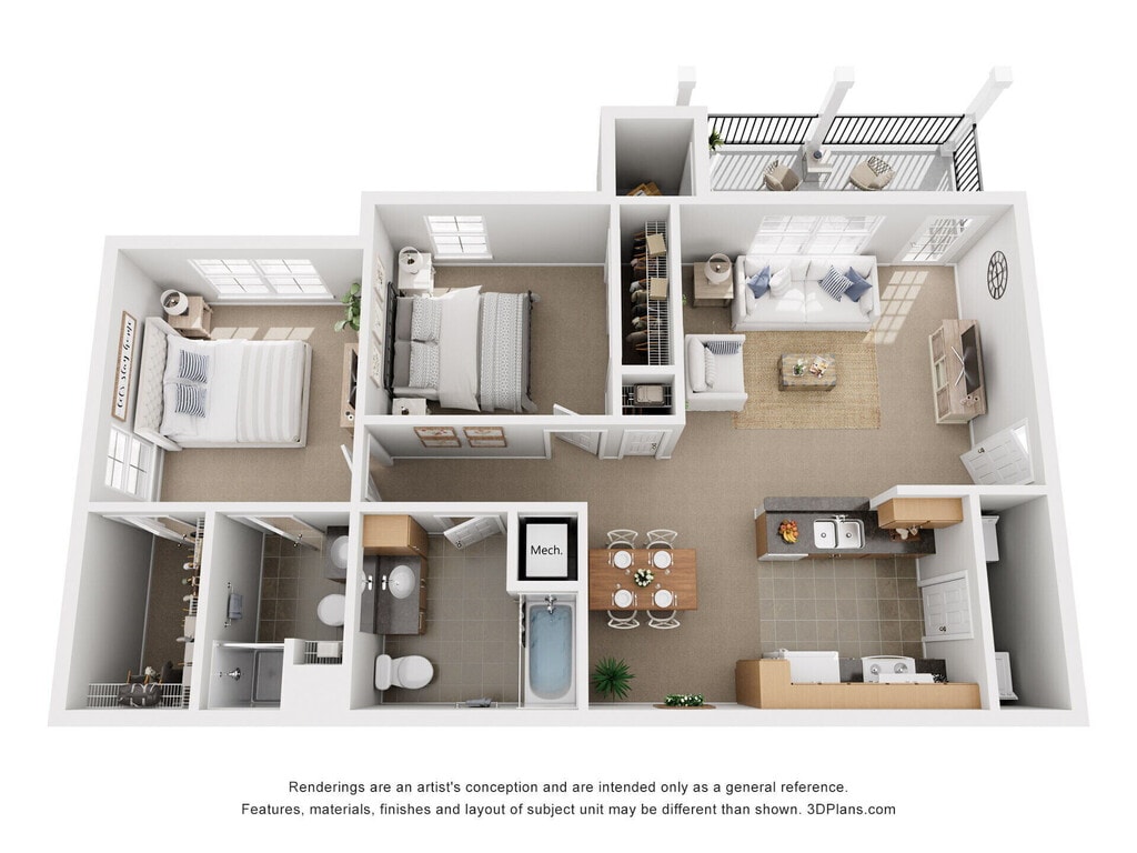 2 Dormitorios, 2 Baños, 1027 pies²El más grandeEsta opción tiene las unidades más grandes para este modeloGalería del Modelo
