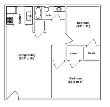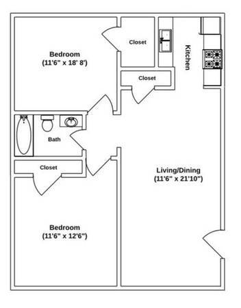 Modelo de apartamento: BurminghamDesde $7752 Dormitorios, 1 Baño, 805 sq ftNo Disponible![]()