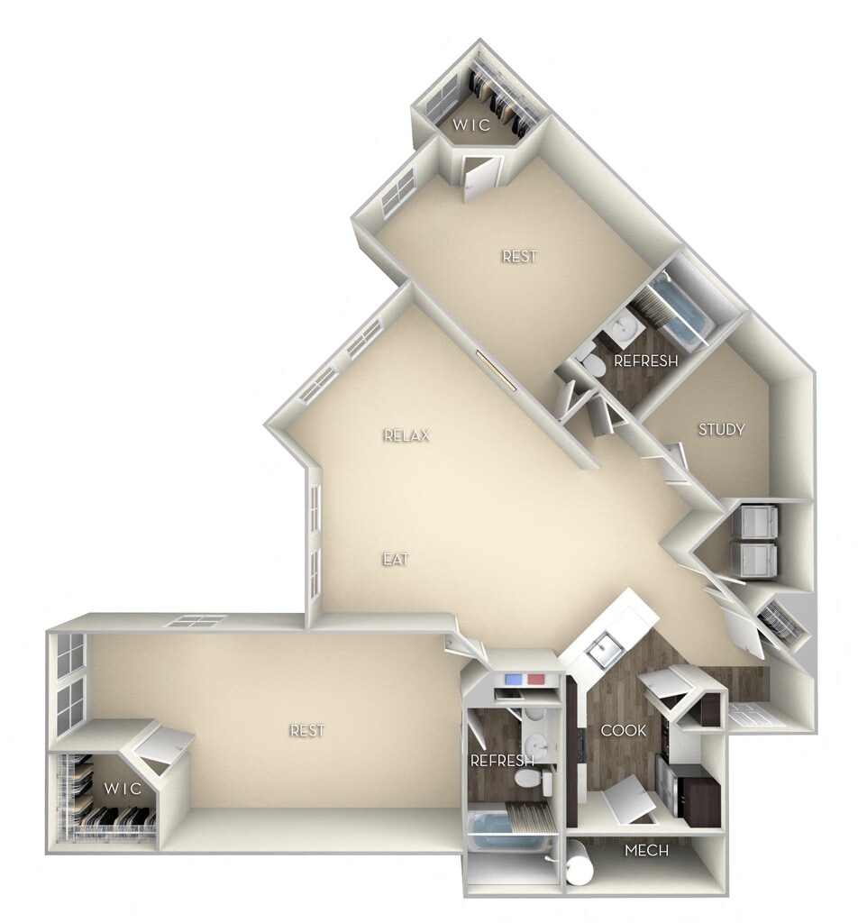 1 Dormitorio, 1 Baño, 756-758 pies²Disponible AhoraGalería del Modelo