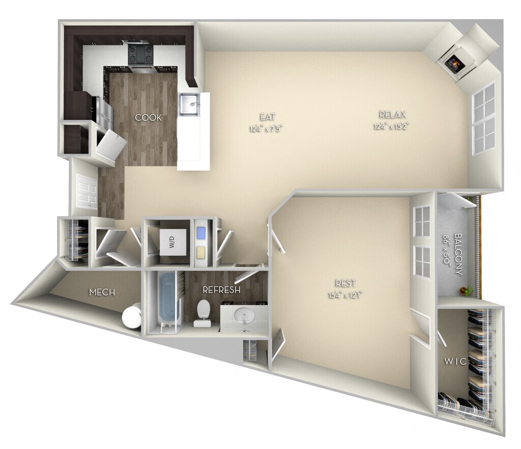 1 Dormitorio, 1 Baño, 824 pies²Disponible AhoraGalería del Modelo