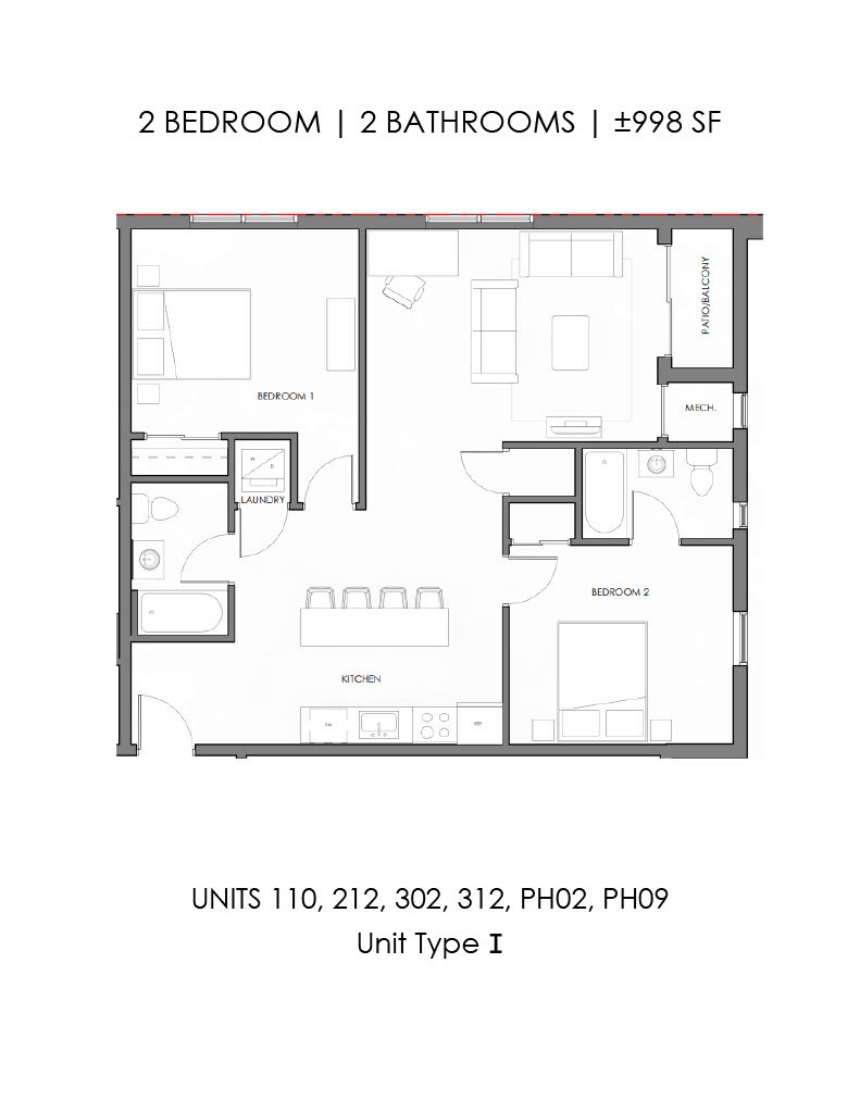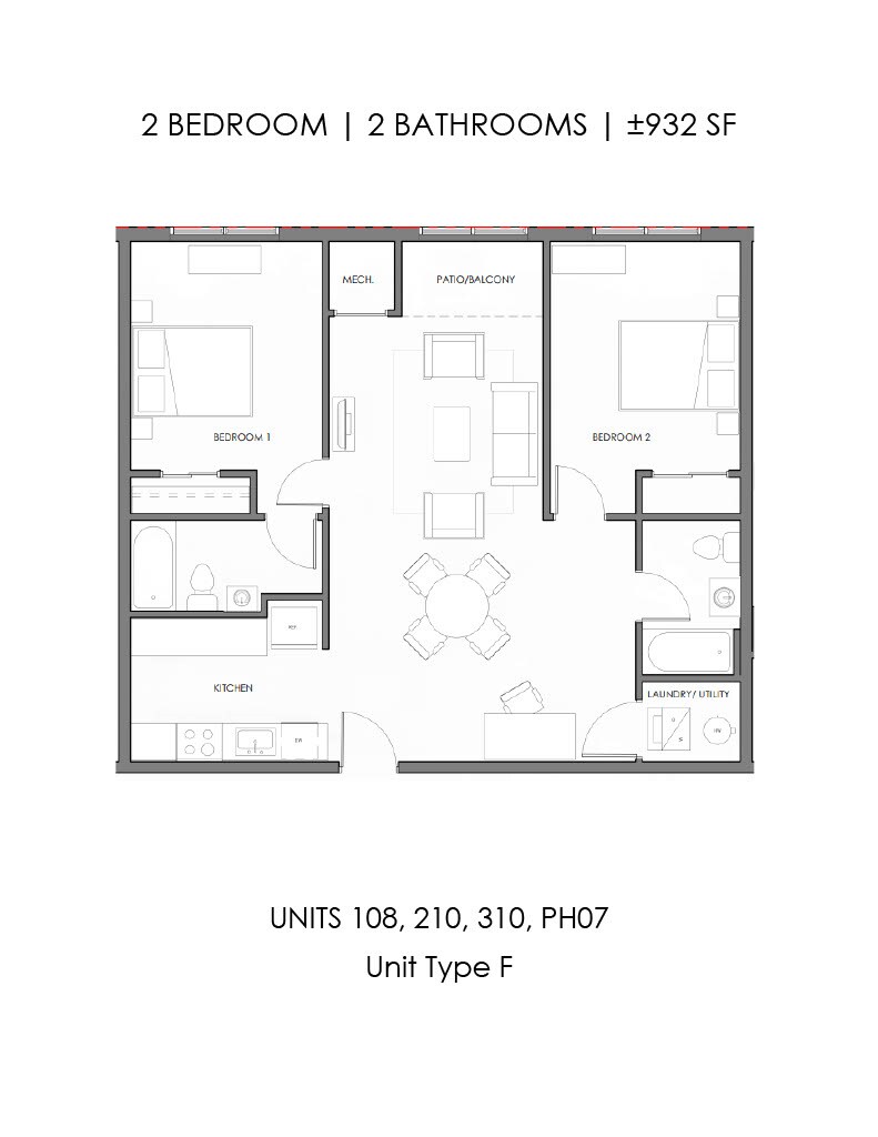 Two Bedroom Two Bath Medium - Plano 1 Unidad de apartamento: PH07Modelo de apartamento: Two Bedroom Two Bath Medium$1,8782 Dormitorios, 2 Baños, 932 sq ftDisponible AhoraTwo Bedroom One Bath Large