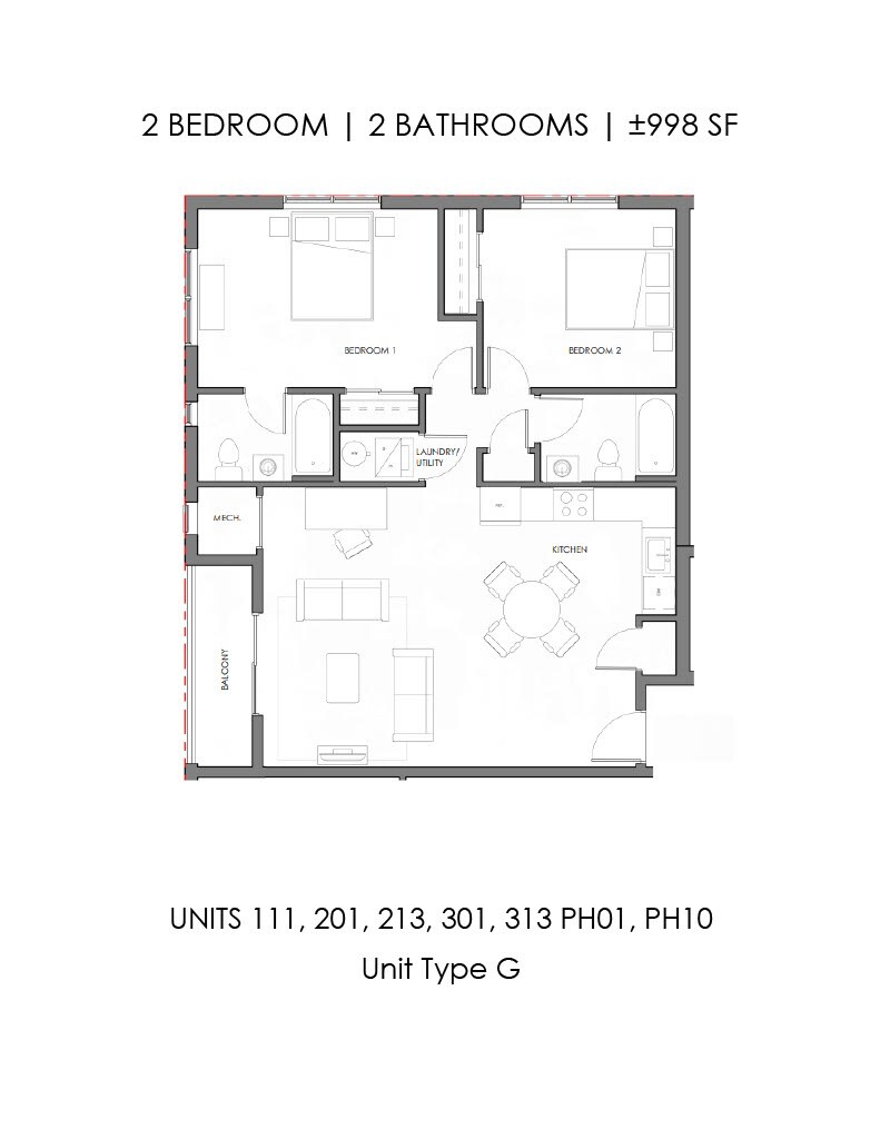 2 Dormitorios, 1 Baño, 998 pies²Galería del Modelo