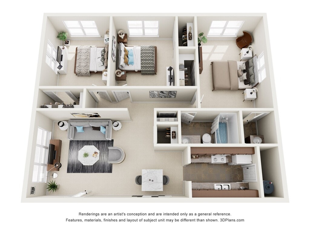 Modelo de apartamento: 2x1Desde $7952 Dormitorios, 1 Baño, 987 sq ftNo Disponible2x1 - Plano 1 3 Dormitorios