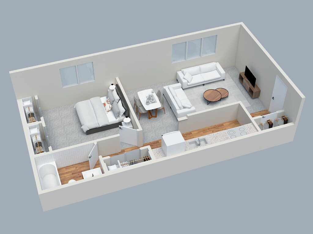 1 Dormitorio, 1 Baño, 623 pies²Disponible AhoraGalería del Modelo