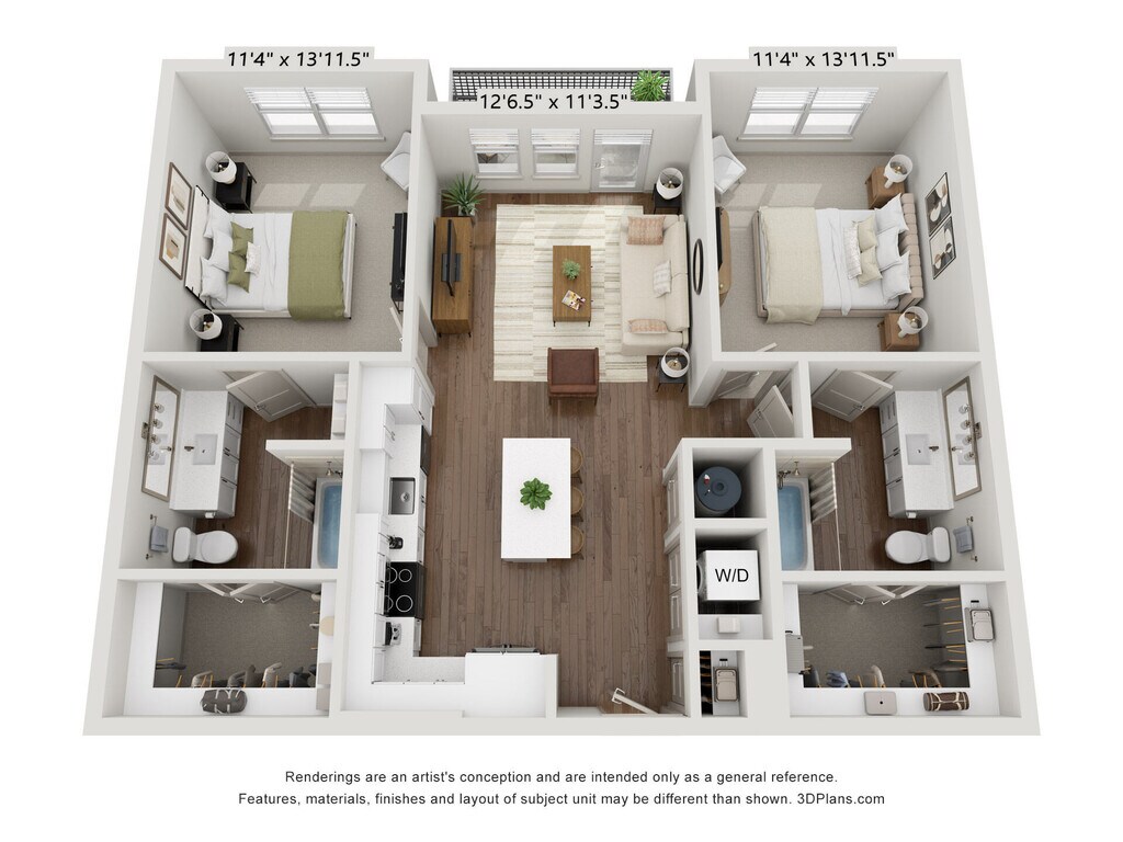 Modelo de apartamento: A2Desde $1,4851 Dormitorio, 1 Baño, 755 sq ftDisponible Ahora![]()