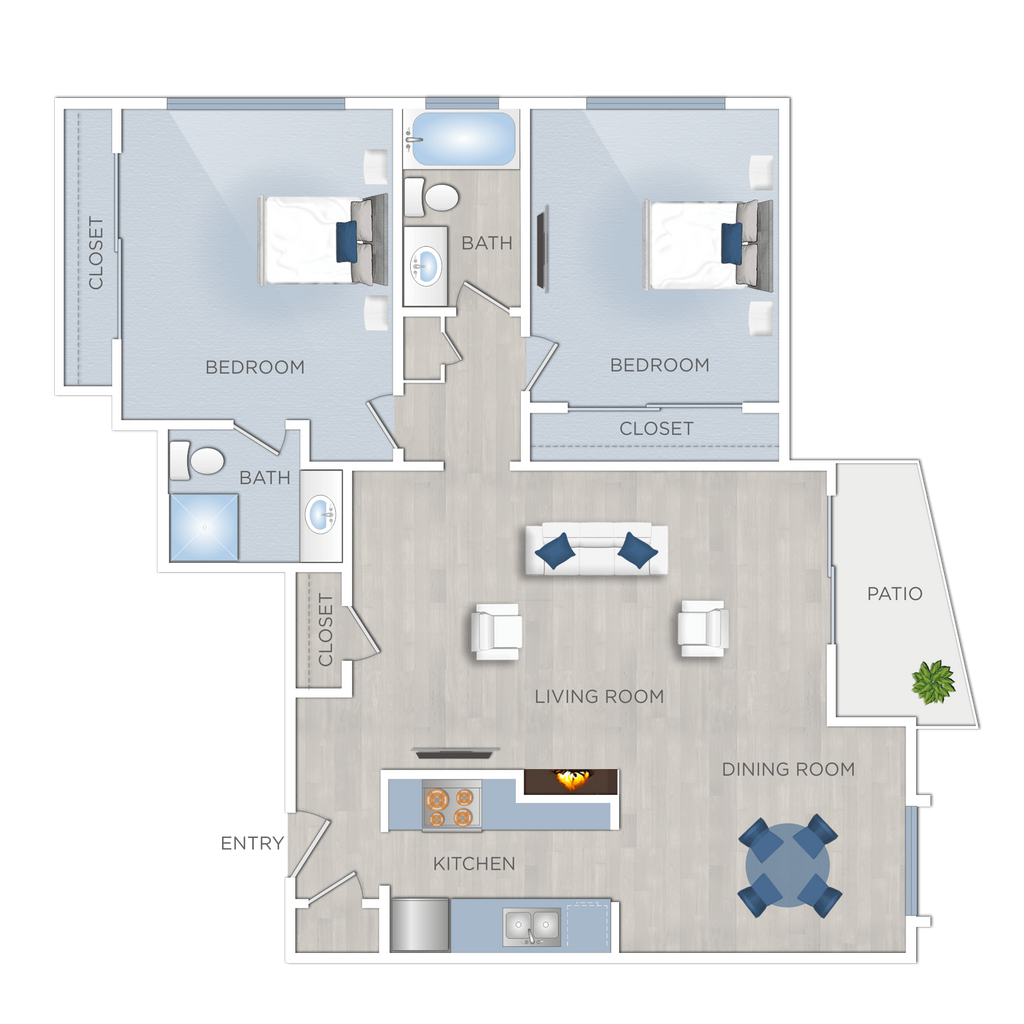 Fecha Disponibilidad Unidad No Disponible Q Modelo de apartamento: Q2 Dormitorios, 2 Baños, sq ftNo Disponible![]()