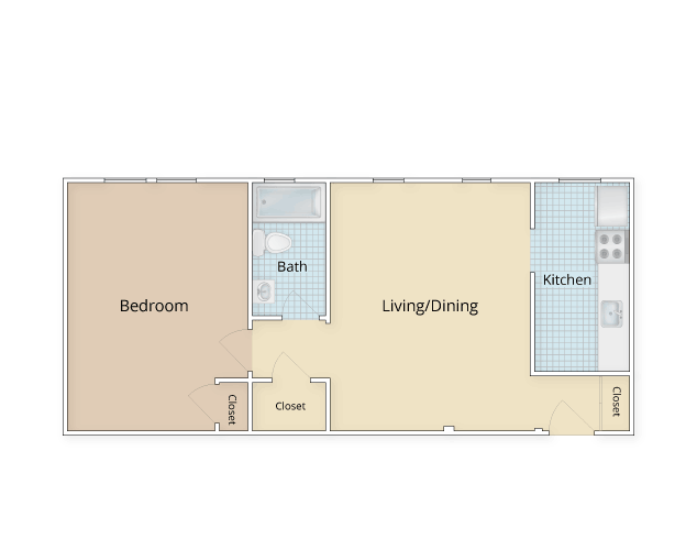 Estudio, 1 Baño, 403-412 pies²Disponible AhoraGalería del Modelo