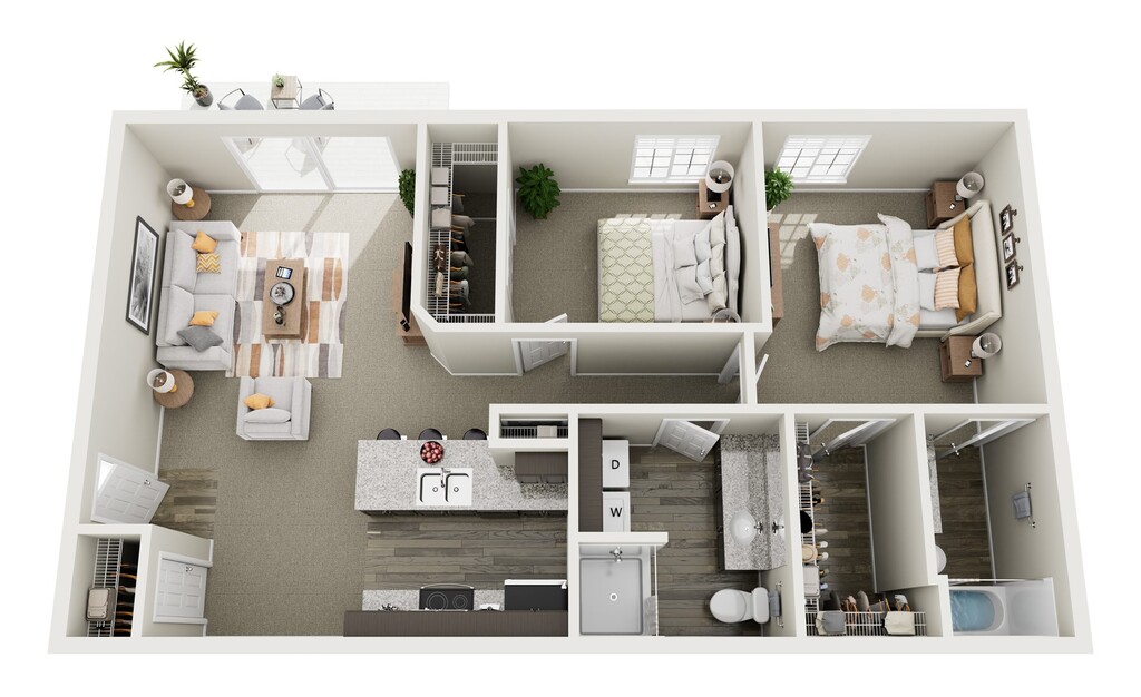 2 Dormitorios, 2 Baños, 1000 pies²Galería del Modelo