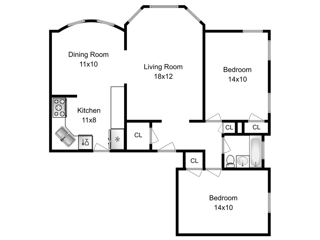 2 Dormitorios, 1 Baño, 1000 pies²Galería del Modelo