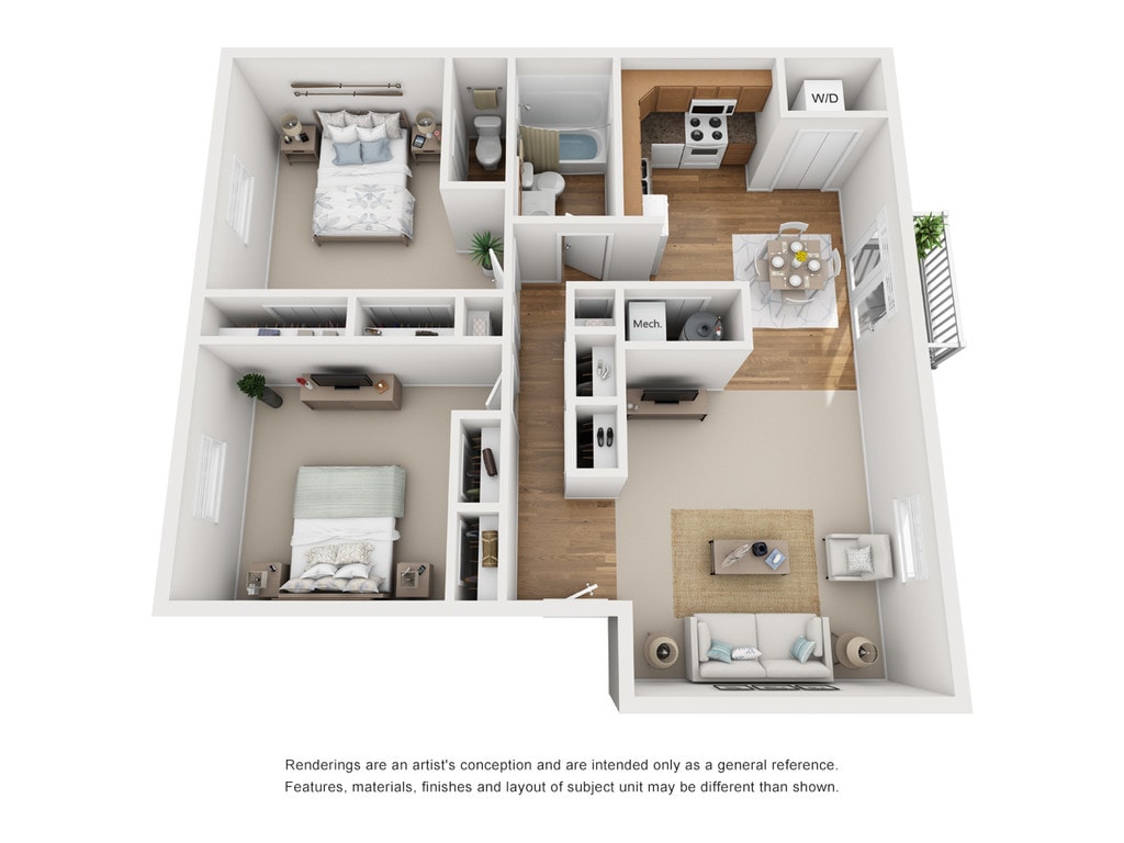 2 Dormitorios, 1.5 Baños, 1045 pies²Precio Mensual TotalDisponible AhoraEl más grandeEsta opción tiene las unidades más grandes para este modeloGalería del Modelo