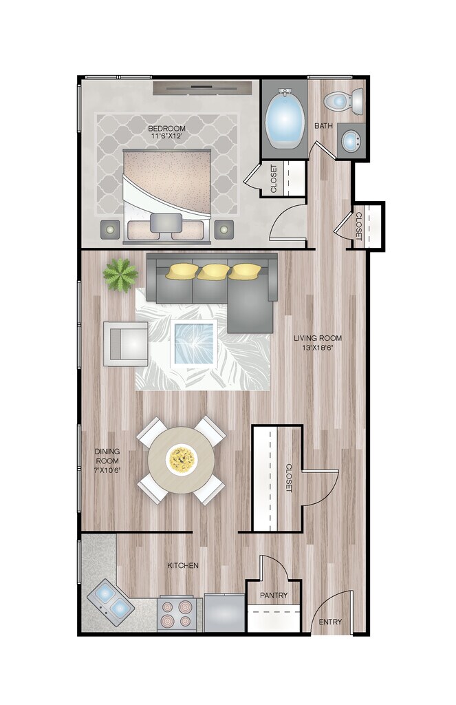 Modelo de apartamento: 1 Bedroom 1 BathroomDesde $1,0001 Dormitorio, 1 Baño, 770 sq ftDisponible Ahora![]()