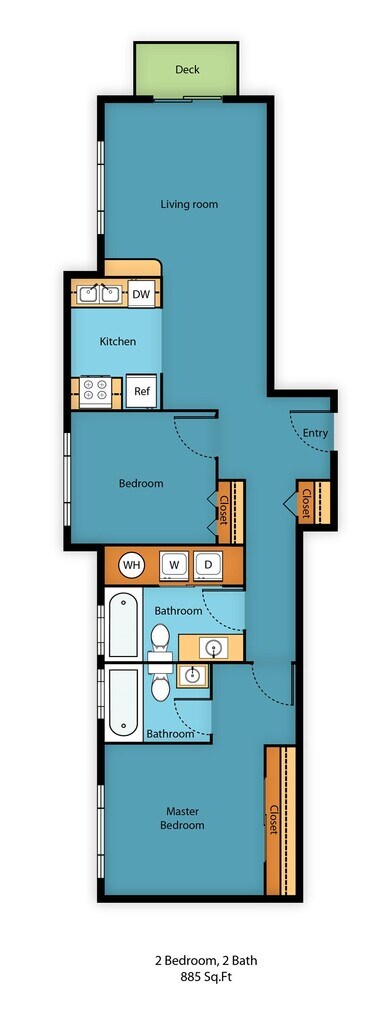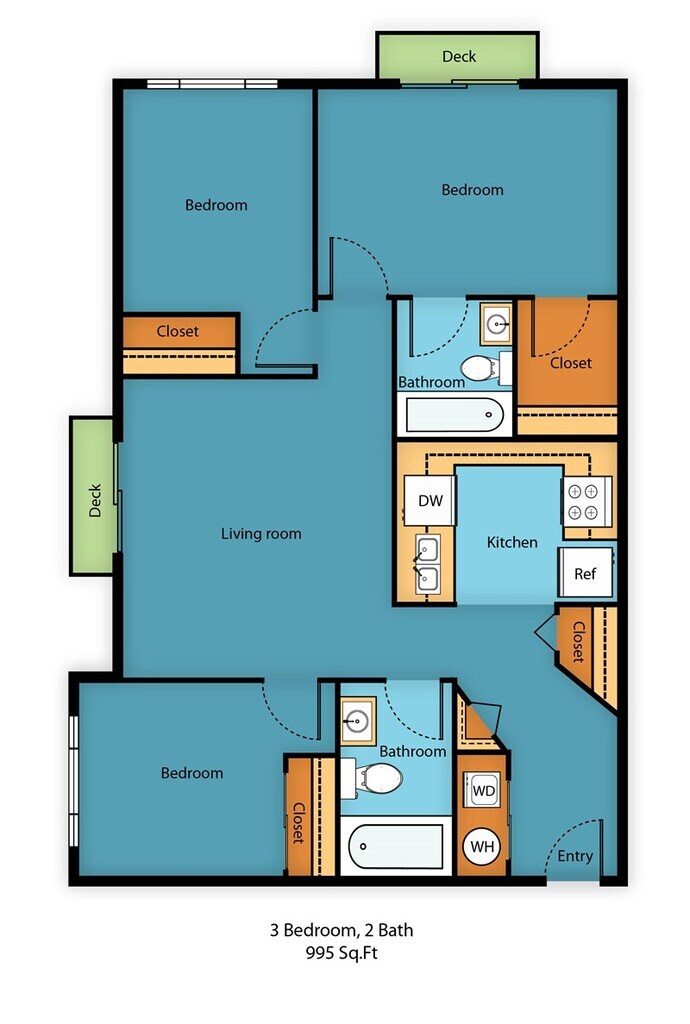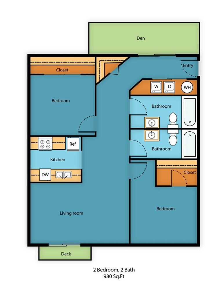 Modelo de apartamento: Two Bedroom Two BathroomLlame para Precios2 Dormitorios, 2 Baños, 835-980 sq ftNo Disponible![]()