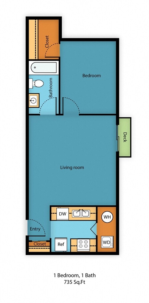 1 Dormitorio, 1 Baño, 510-735 pies²Disponible AhoraGalería del Modelo