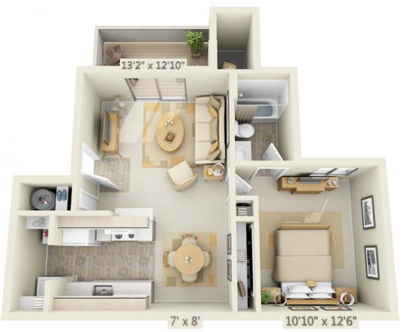 1 Dormitorio, 1 Baño, 619 pies²Disponible AhoraGalería del Modelo