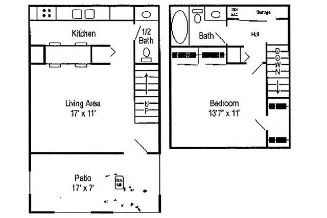 Modelo de apartamento: 1 Bedroom Townhome1 Dormitorio, 1.5 Baños, 732 sq ftNo Disponible![]()