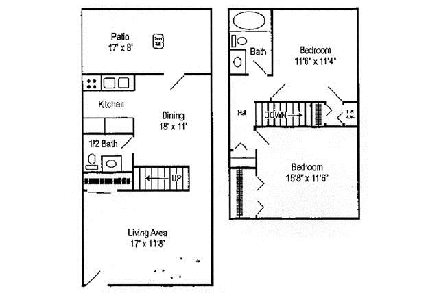 Modelo de apartamento: 2 Bedroom Townhome2 Dormitorios, 1.5 Baños, 1035 sq ftNo Disponible![]()