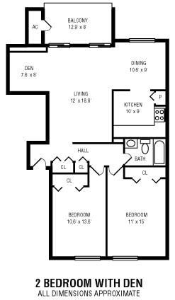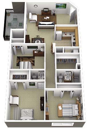 Modelo de apartamento: 3Bedroom 1.5Bathroom3 Dormitorios, 1.5 Baños, 1260-1375 sq ftNo Disponible3Bedroom 1.5Bathroom - Plano 1 3Bedroom Den 1.5Bathroom