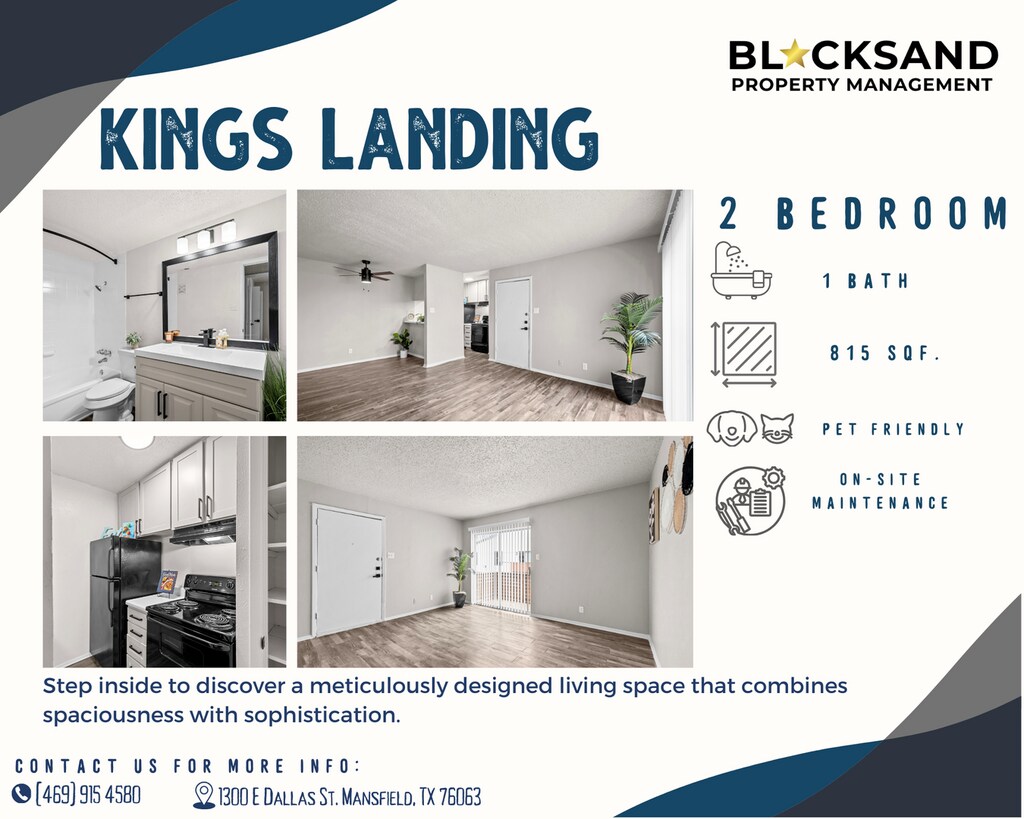 Kings Landing se encuentra en el Barrio Downtown Mansfield y el código postal 76063 de Mansfield, TX.