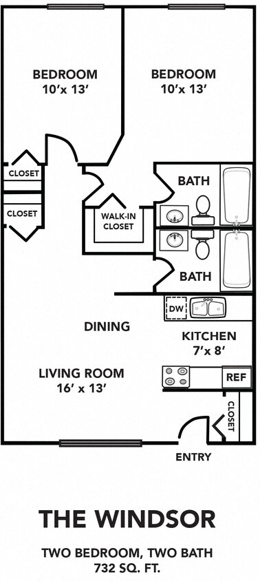 Modelo de apartamento: Two Bedroom Two Bath2 Dormitorios, 2 Baños, 732 sq ftNo DisponibleTwo Bedroom Two Bath - Plano 1