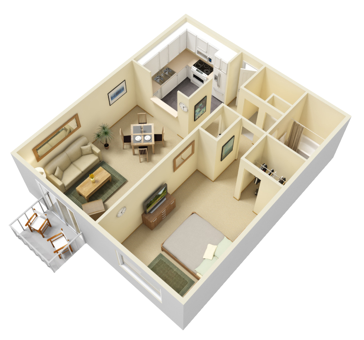 1 Dormitorio, 1 Baño, 675 pies²Precio Mensual TotalDisponible AhoraGalería del Modelo