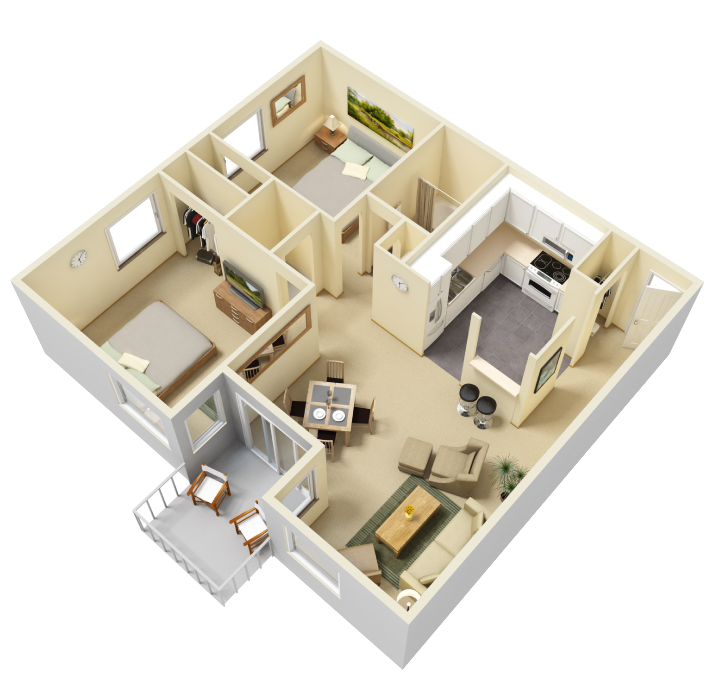 2 Dormitorios, 1 Baño, 708-815 pies²Precio Mensual TotalDisponible AhoraGalería del Modelo