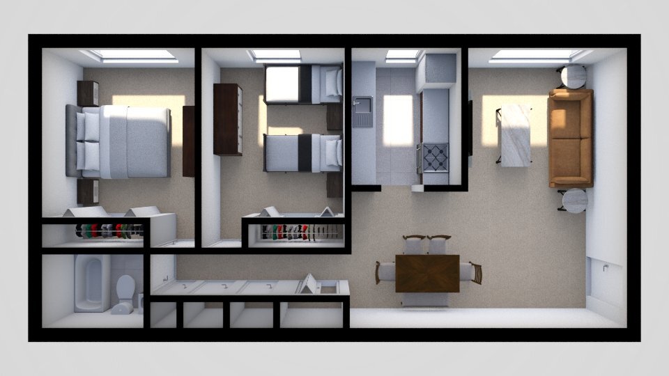2 Dormitorios, 1 Baño, 815 pies²Disponible AhoraGalería del Modelo