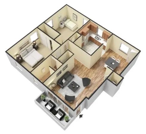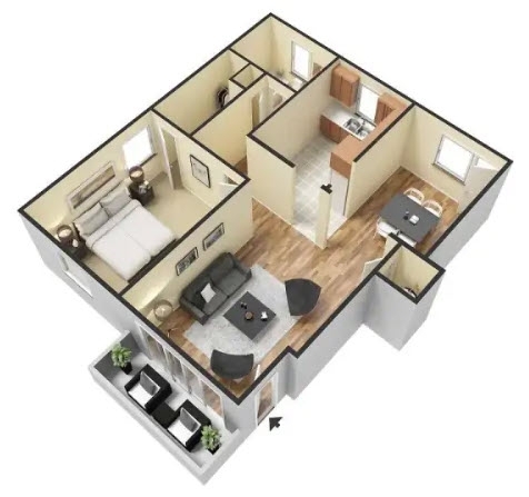 Modelo de apartamento: 1 BedroomDesde $1,6901 Dormitorio, 1 Baño, 700 sq ftDisponible Ahora![]()