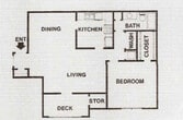 Modelo de apartamento: One BedroomDesde $9751 Dormitorio, 1 Baño, 900 sq ftDisponible AhoraOne Bedroom - Plano 1 2 Dormitorios