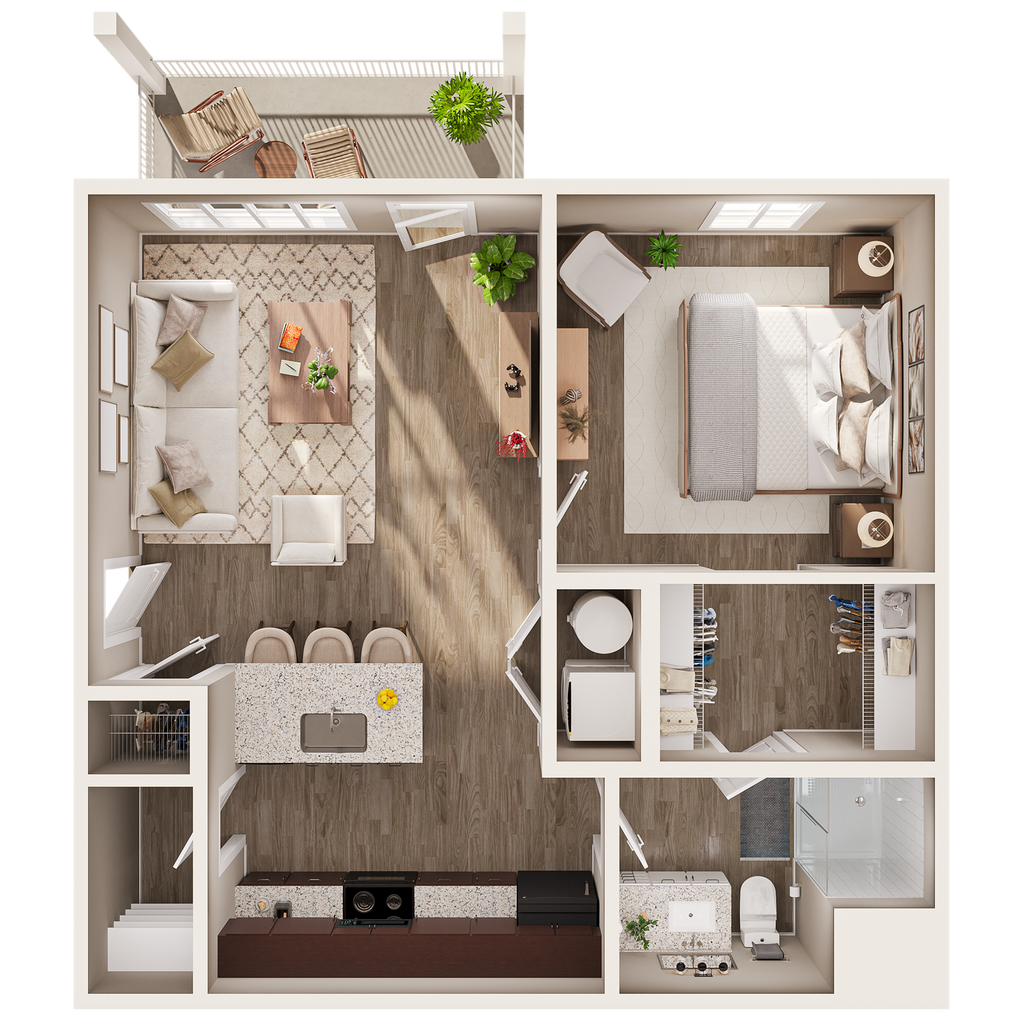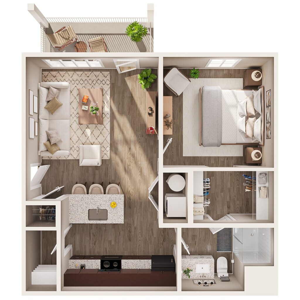 1 Dormitorio, 1 Baño, 722 pies²Galería del Modelo
