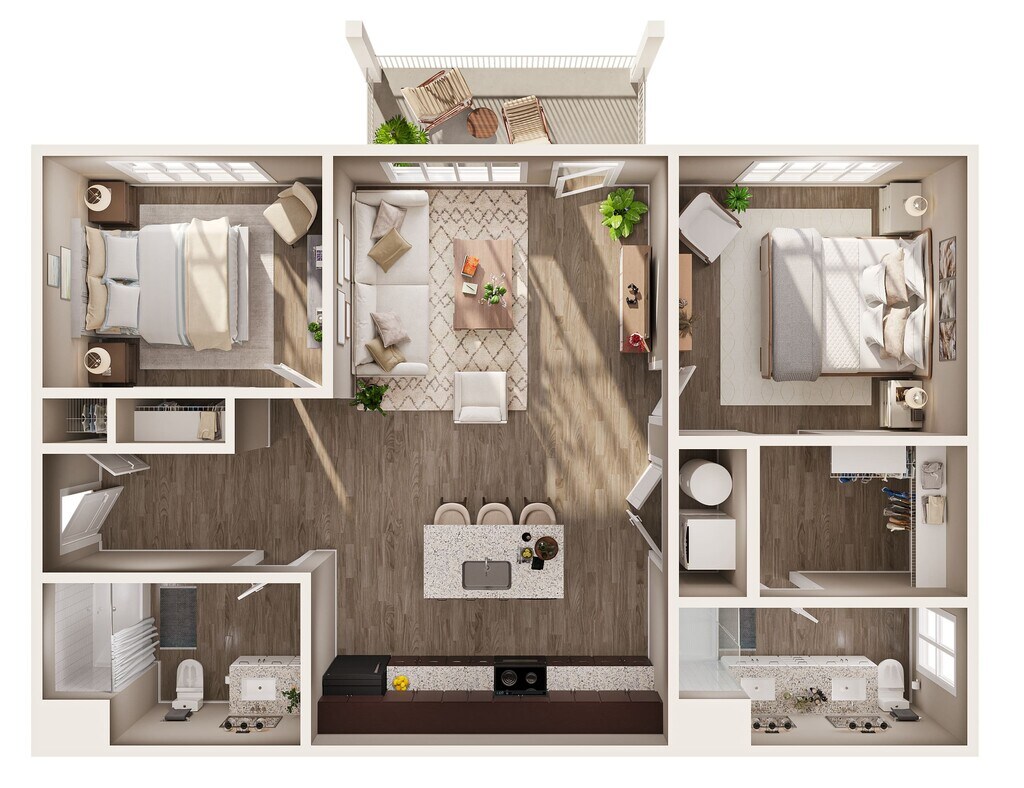 2 Dormitorios, 2 Baños, 1053 pies²Galería del Modelo