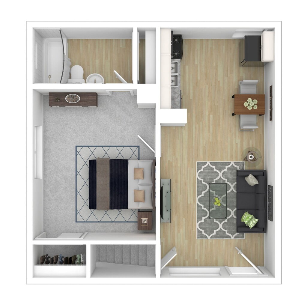 1 Dormitorio, 1 Baño, 550 pies²Disponible August 14, 2027Galería del Modelo