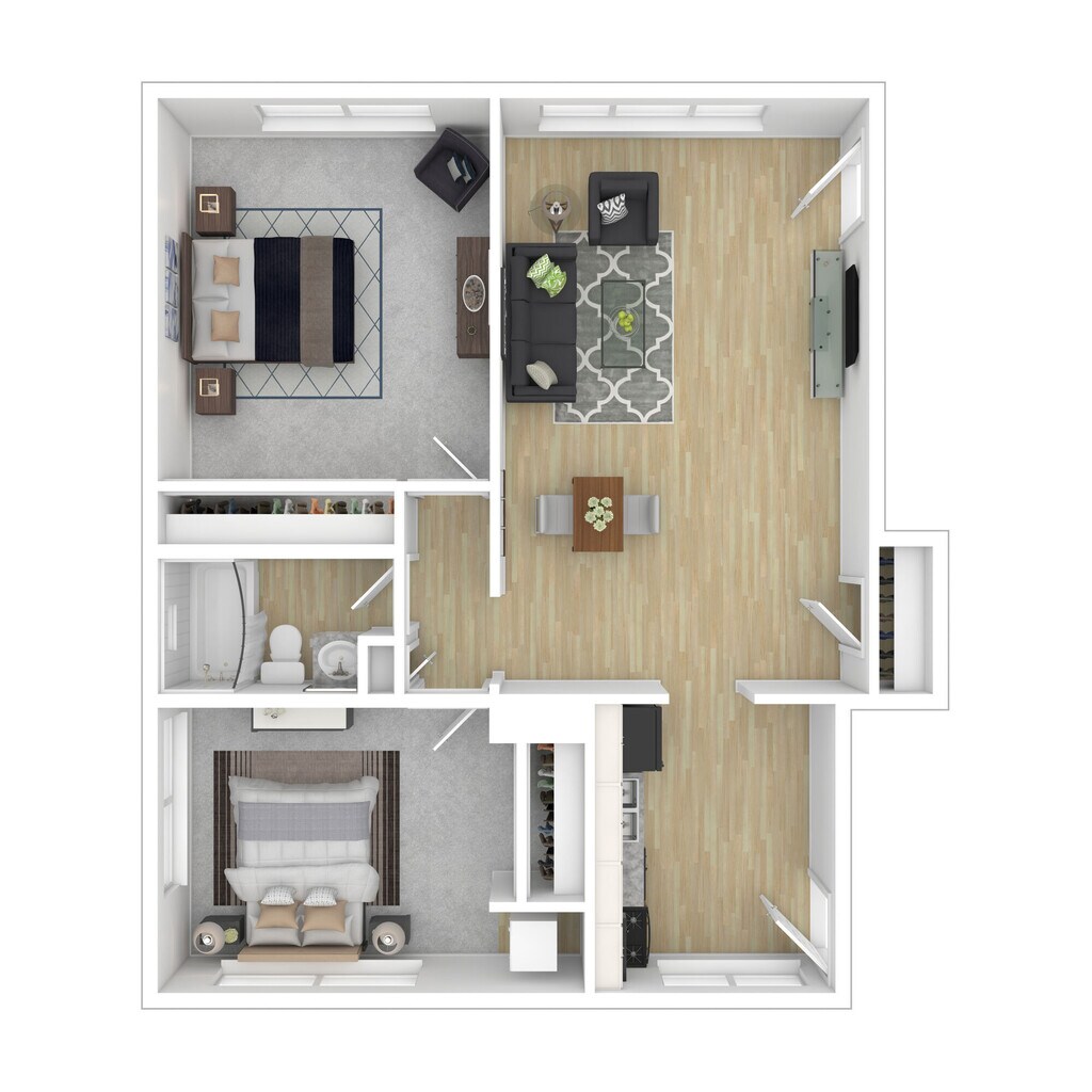 2 Dormitorios, 1 Baño, 700 pies²Disponible September 19, 2028Galería del Modelo