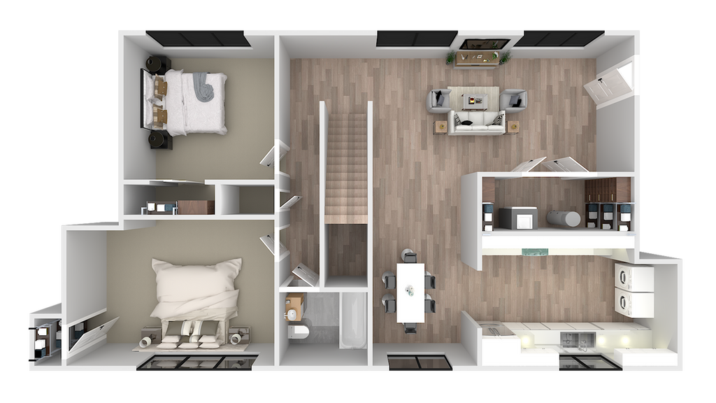 2 Dormitorios, 1 Baño, 962 pies²Disponible AhoraGalería del Modelo