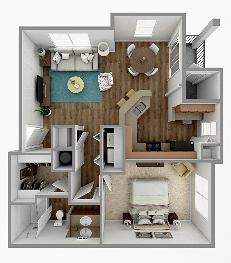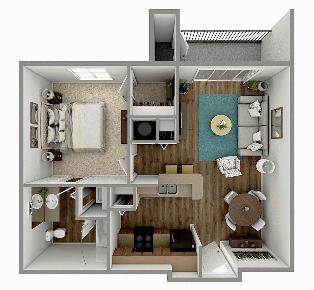 1 Dormitorio, 1 Baño, 797 pies²Disponible AhoraGalería del Modelo