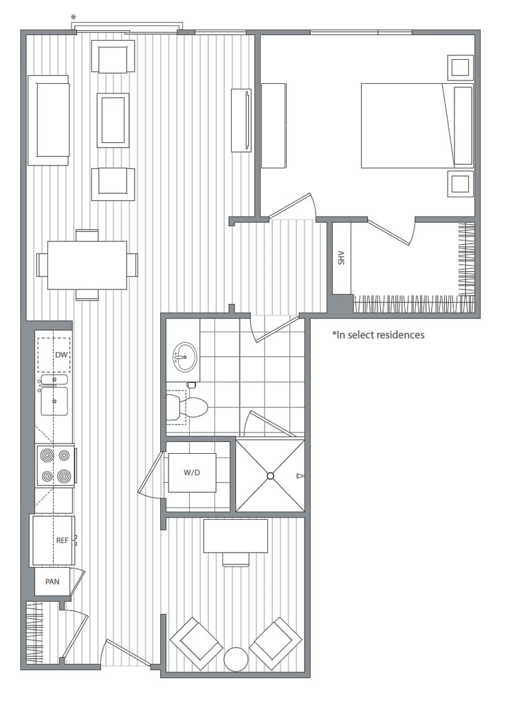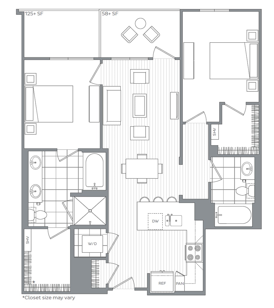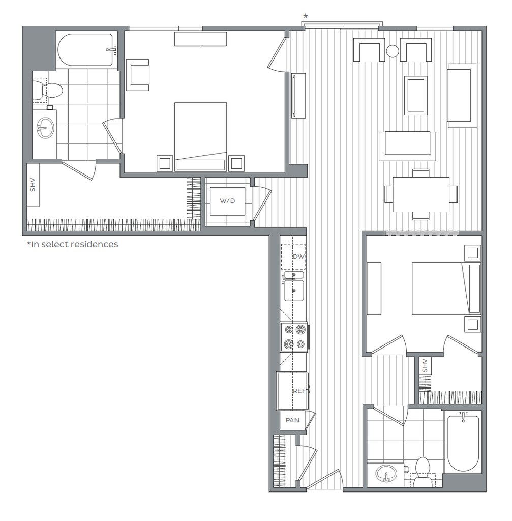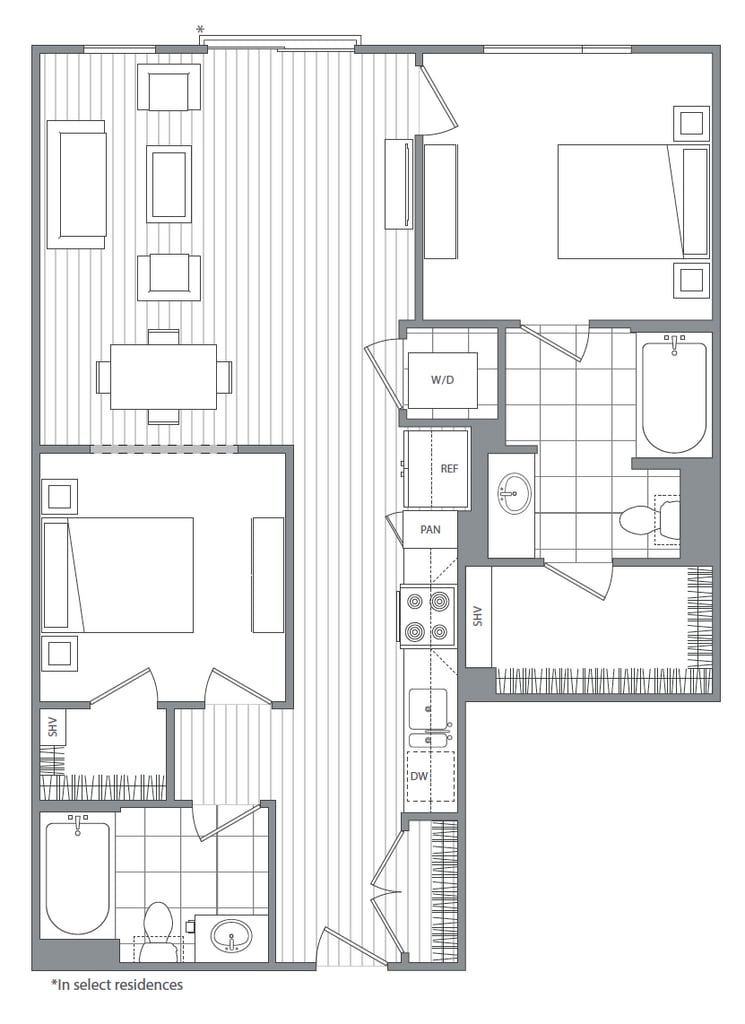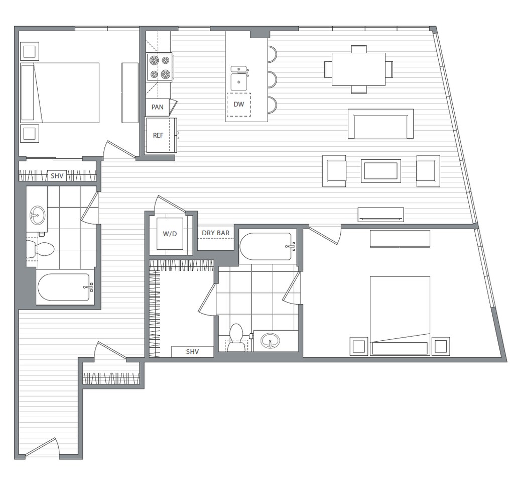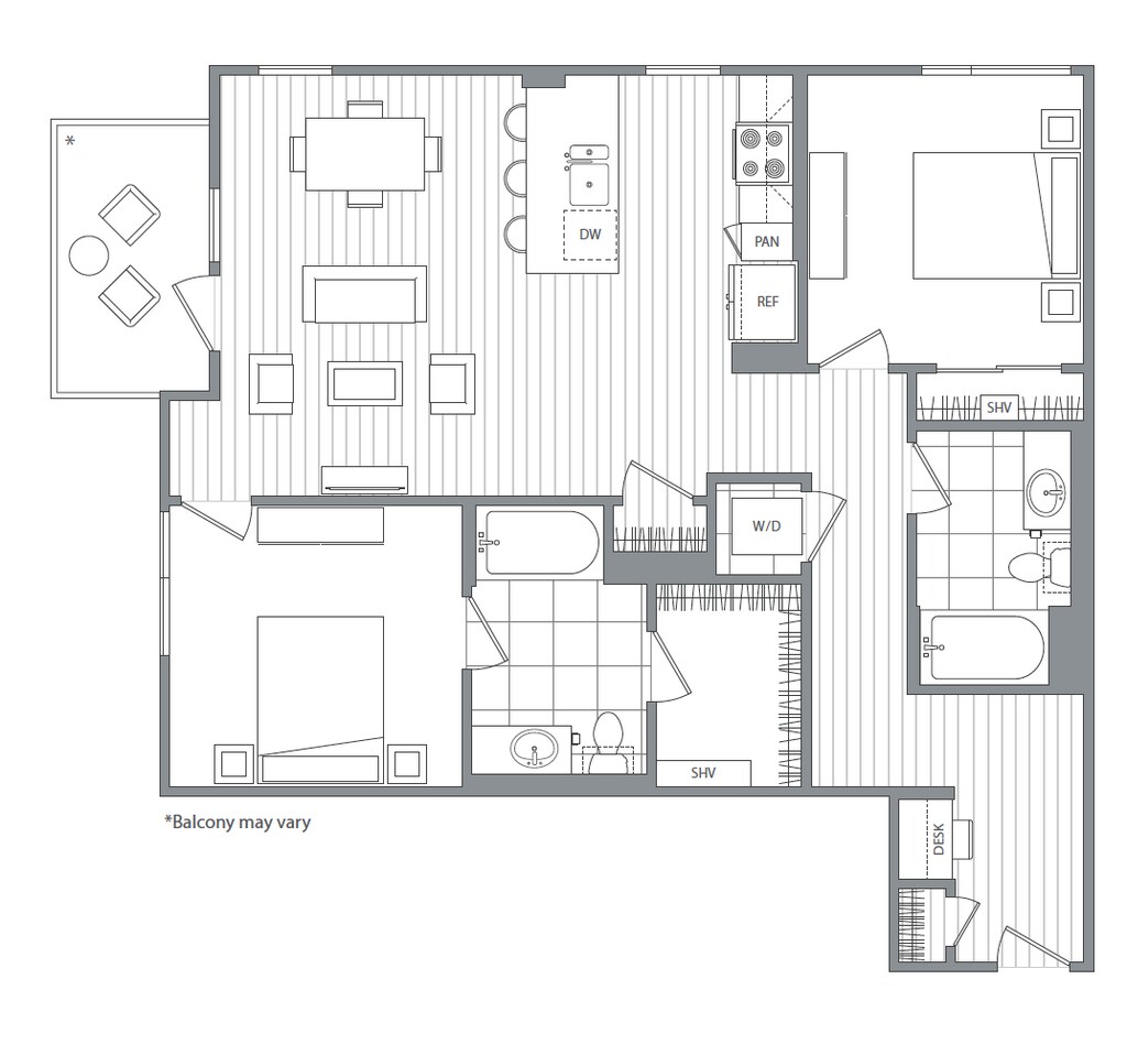 1 Dormitorio, 1 Baño, 786 pies²Disponible AhoraGalería del Modelo