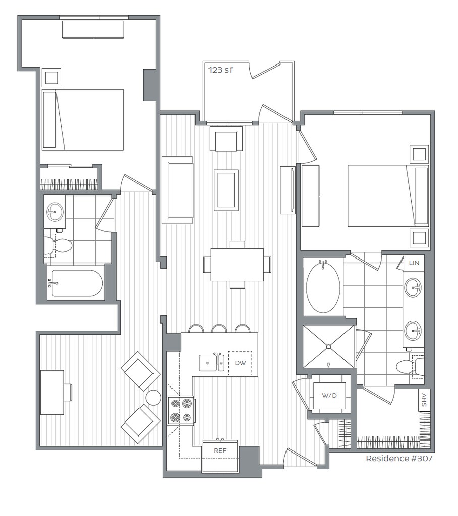 1 Dormitorio, 1 Baño, 737 pies²Disponible AhoraGalería del Modelo