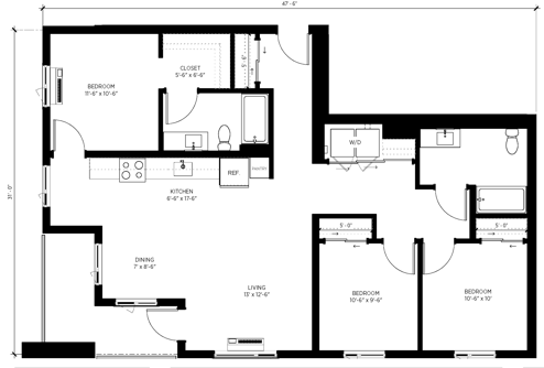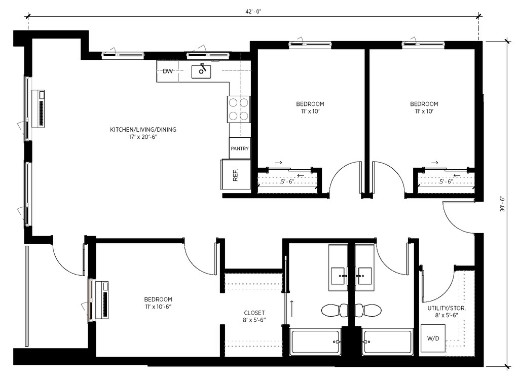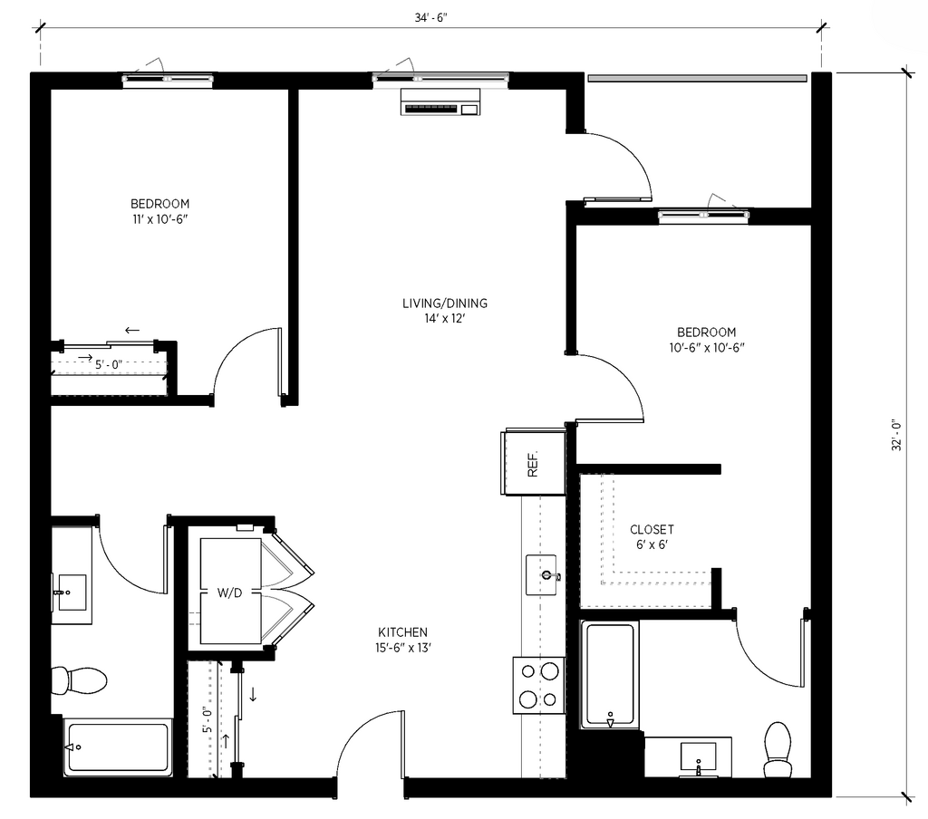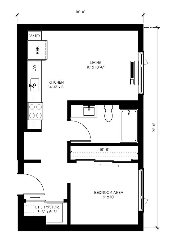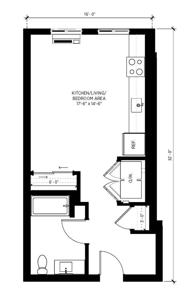 Studio ADA - Plano 1 Unidad de apartamento: 1-204Modelo de apartamento: Studio ADA$1,550Estudio, 1 Baño, 434 sq ftDisponible April 1, 2026Studio 1.5