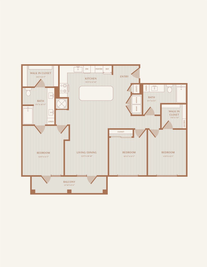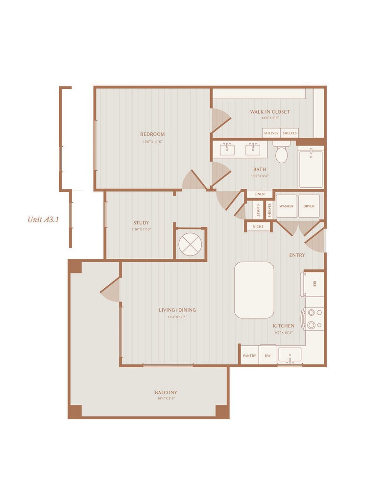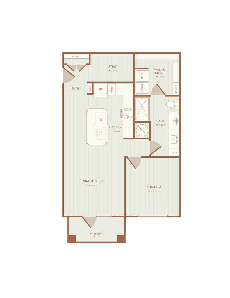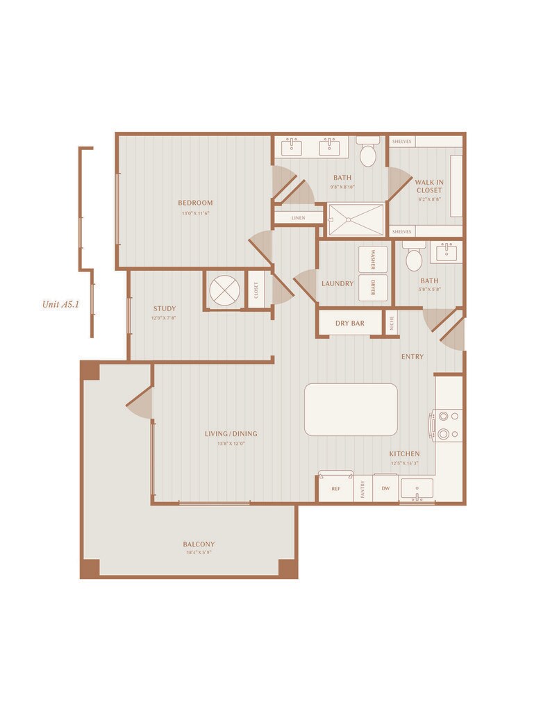 Modelo de apartamento: A1Desde $1,4291 Dormitorio, 1 Baño, 727 sq ftDisponible Ahora![]()