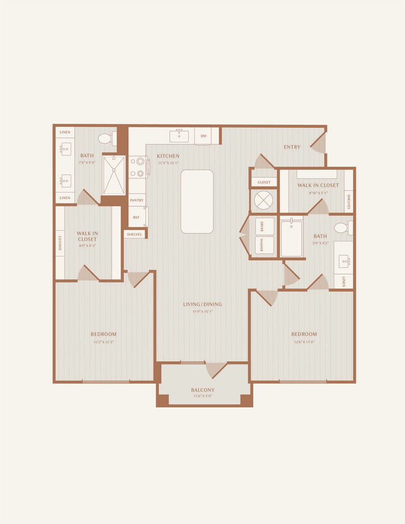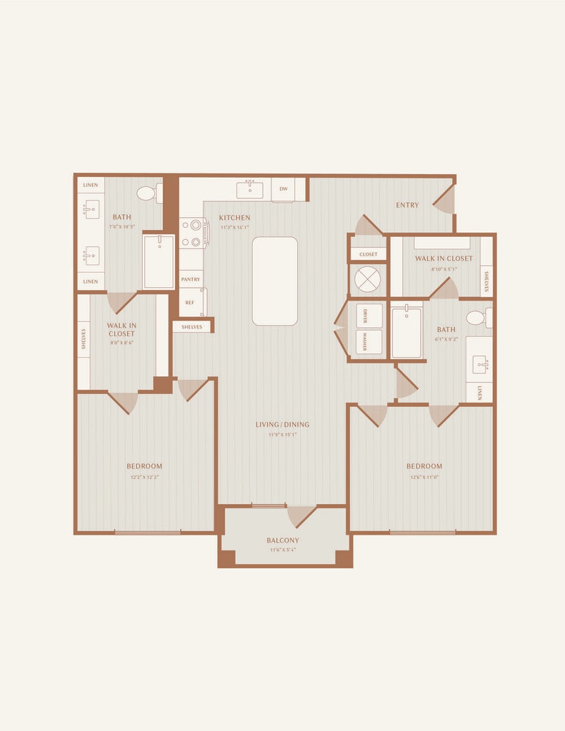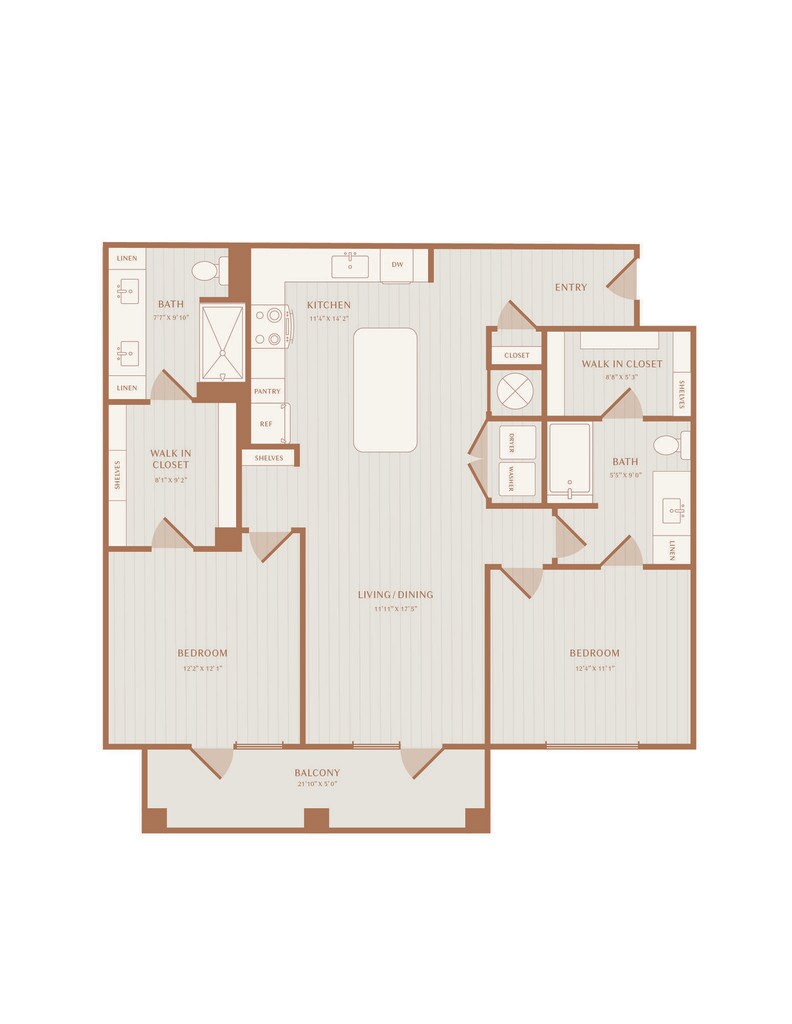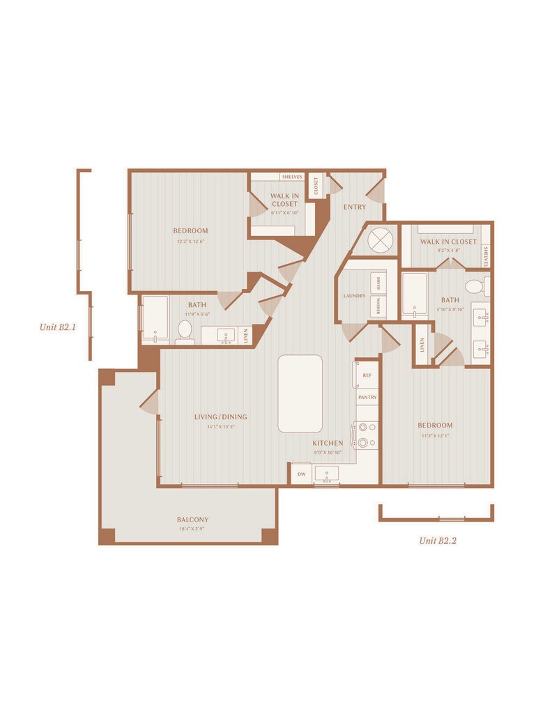 Modelo de apartamento: A2Desde $1,4991 Dormitorio, 1 Baño, 825 sq ftDisponible Ahora![]()