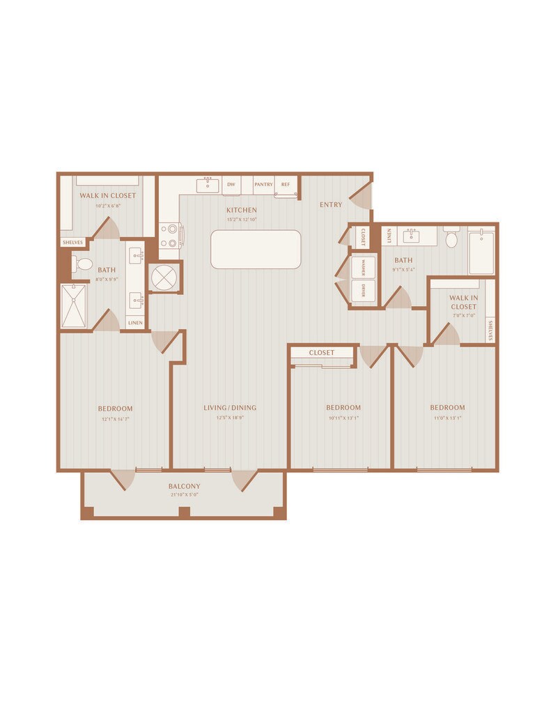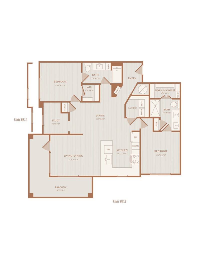 1 Dormitorio, 1 Baño, 851 pies²Disponible AhoraGalería del Modelo