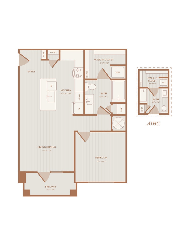 1 Dormitorio, 1 Baño, 727 pies²Disponible AhoraGalería del Modelo