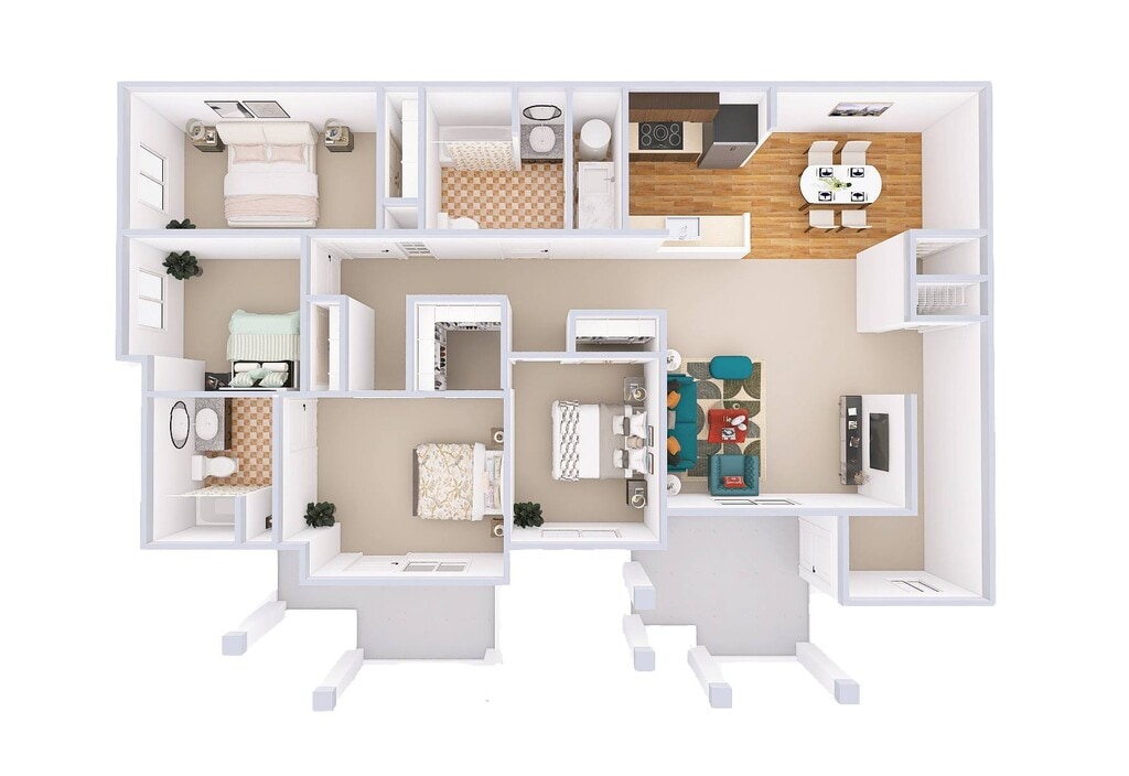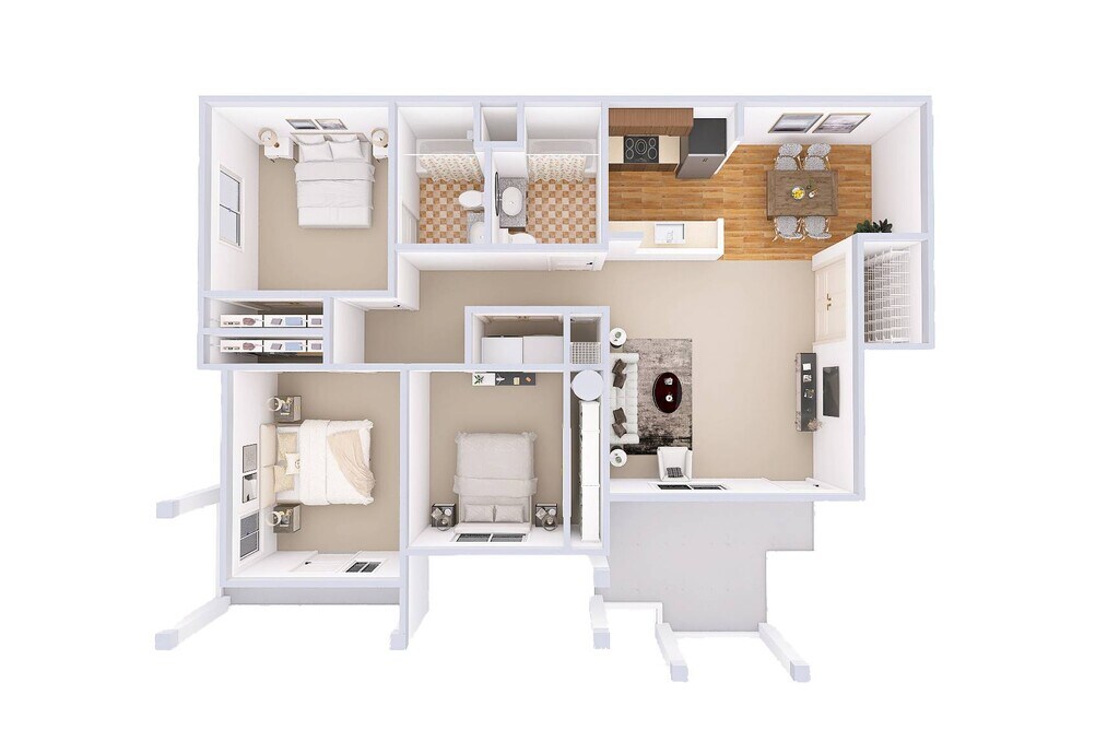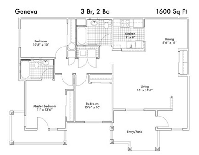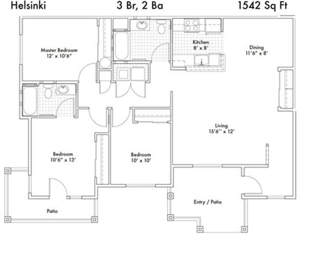 3 Dormitorios, 2 Baños, 1269 pies²Galería del Modelo