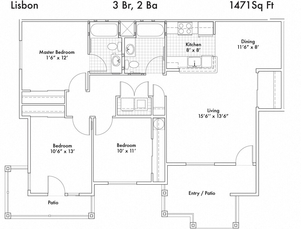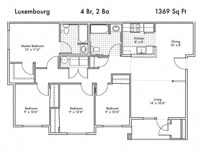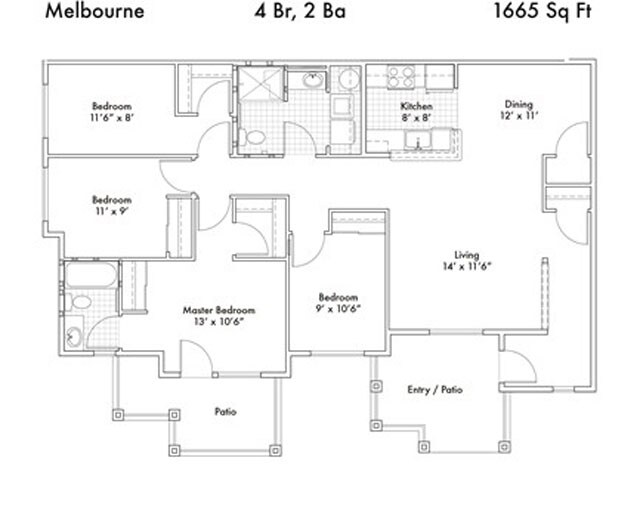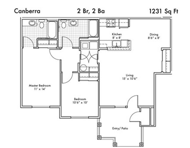 Modelo de apartamento: CanberraLlame para Precios2 Dormitorios, 2 Baños, 1231 sq ftNo Disponible![]()