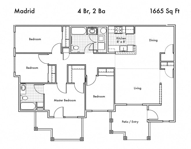 Modelo de apartamento: ChicagoLlame para Precios2 Dormitorios, 2 Baños, 1231 sq ftNo Disponible![]()