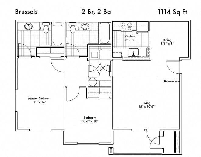 Modelo de apartamento: BrusselsLlame para Precios2 Dormitorios, 2 Baños, 1114 sq ftNo Disponible![]()