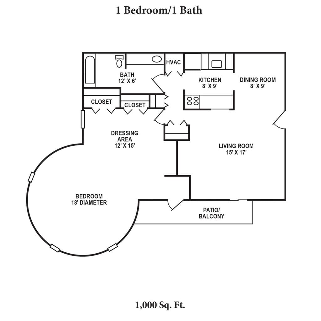 1 Bedroom 1 Bath B - Plano 1 ![]()